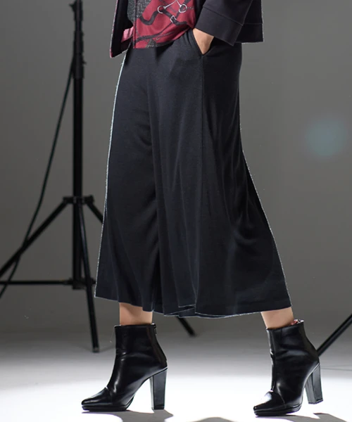 スカート見えするくらいたっぷりとした分量感のあるキュロットパンツ。動くたびに揺れるフレアが上品な印象です。ウォッシャブルというのもポイント。