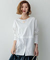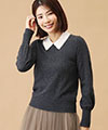 襟の端にパール調のビーズをあしらった襟付セーター。パール調のビーズが首元で華やかに輝き、顔映りを明るくしてくれます。袖口のギャザーもアクセントになり、すっきり着用いただけます。
