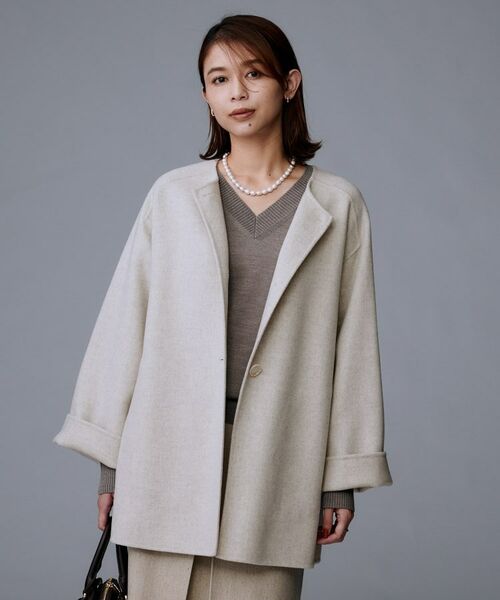 カシミヤ混リバーミドルラップコート
