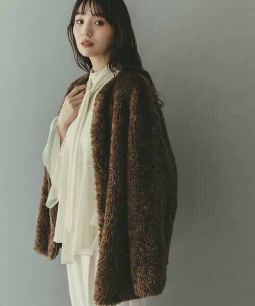 ノーカラーファーボアZIPブルゾン
