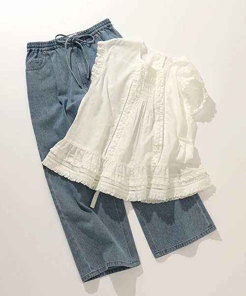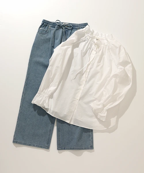 ワイドなデニムで、カジュアルの中に上品な一面を。