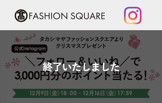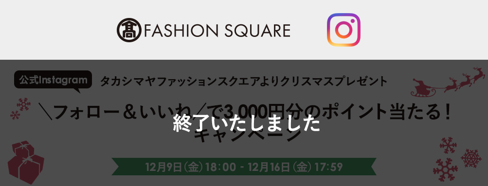 『タカシマヤファッションスクエアよりクリスマスプレゼント!公式Instagram\フォロー&いいね/で3,000円分のポイント当たる!』