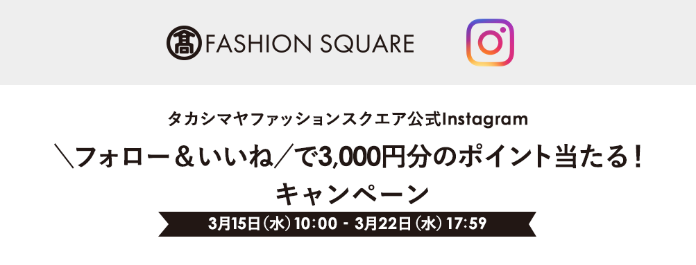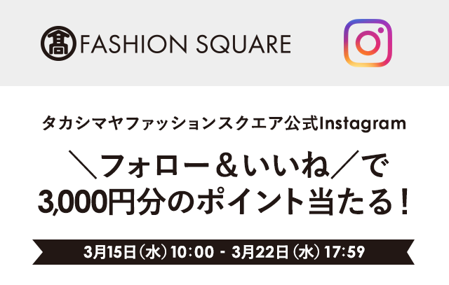 ・「タカシマヤファッションスクエア公式Instagram\フォロー&いいね/で3,000円分のポイント当たる!」