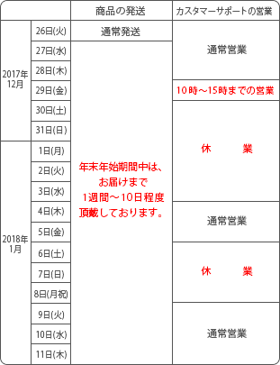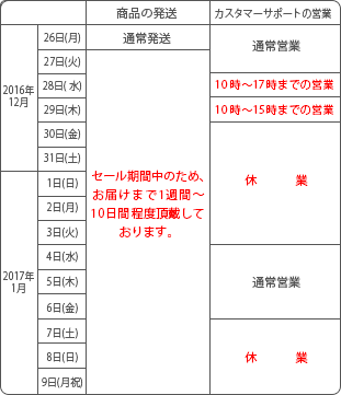 2016年12月29日(木)15時受付分までとさせていただきます。
