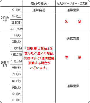 ⇒ 5月2日(火) 以降に、上記ショップの商品ならびに上記ショップの商品を含むご注文は